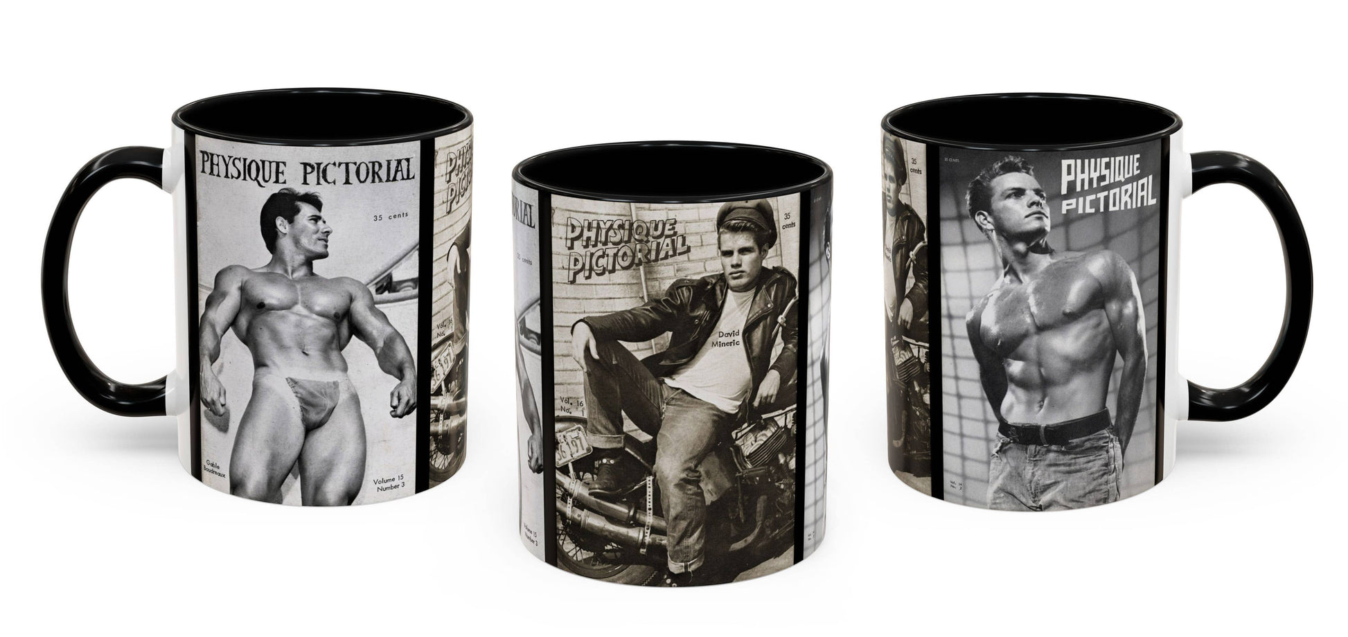 Now you can drink your morning joe with a spicy shot of queer history. Our new Bob Mizer mug features three different Physique Pictorial covers from the 1950s and upward. This hot little mug holds 11oz of your fav beverage, and sports a bodybuilder, a biker and shirtless stud -- all striking the perfect pose!